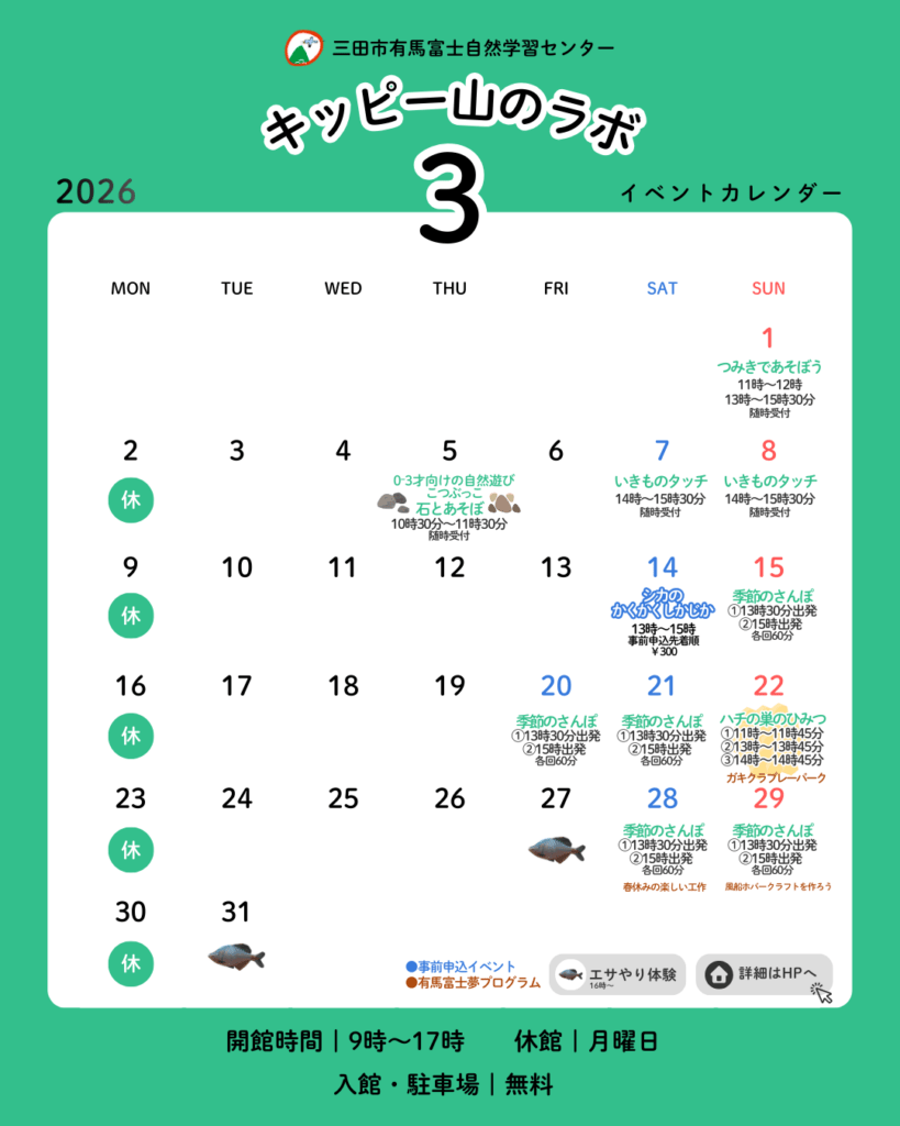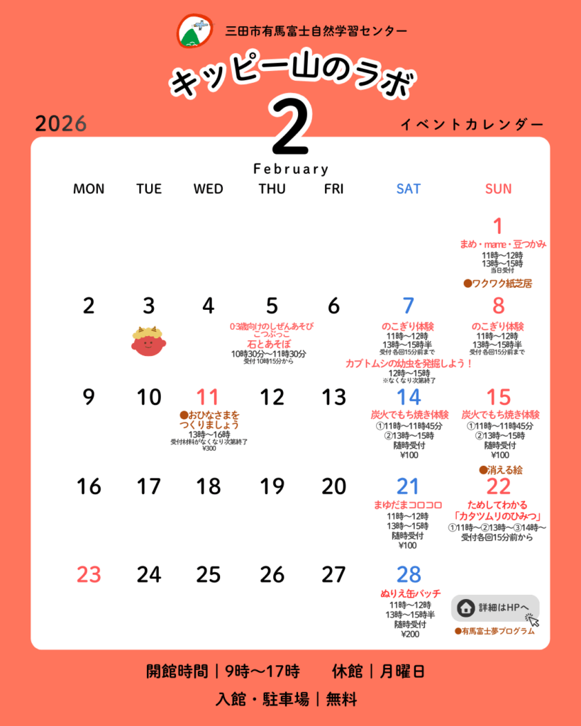 2026年1月28日 2月のイベントカレンダーを掲載しました。(2026/2/1-2026/2/28のイベント情報)