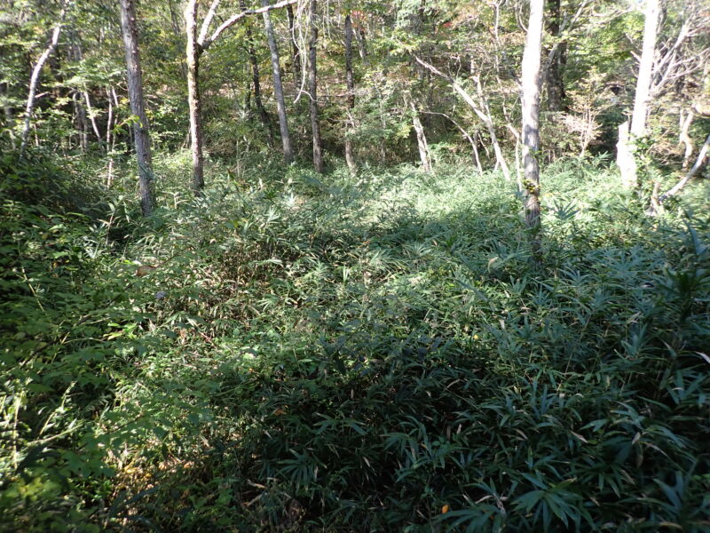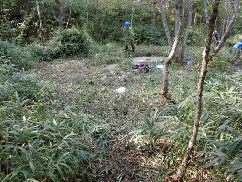 開始前の様子です。ここは1年前にも草刈りをしたのですが、この有様。(とはいえ、笹は以前に比べて細くなっています)