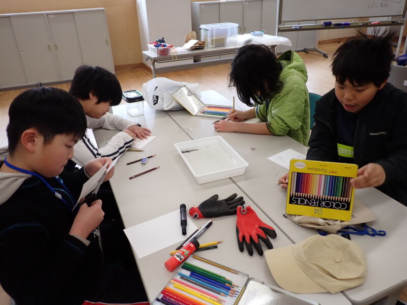 キッピー山のラボに戻ってから、今日発見した生きものをスケッチし、図鑑で名前や特徴を調べました。